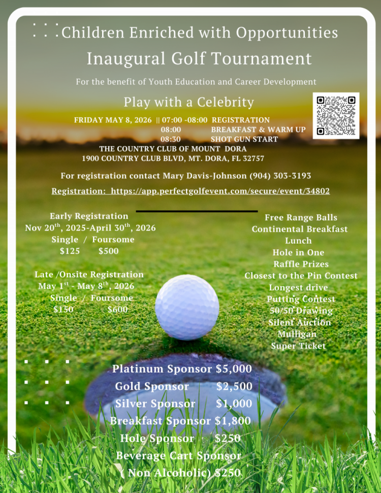may 8, 2026 CEO- Inaugural Golf Tournament Please call (904)303-1393 or email mary.ceo@yahoo.com for more details